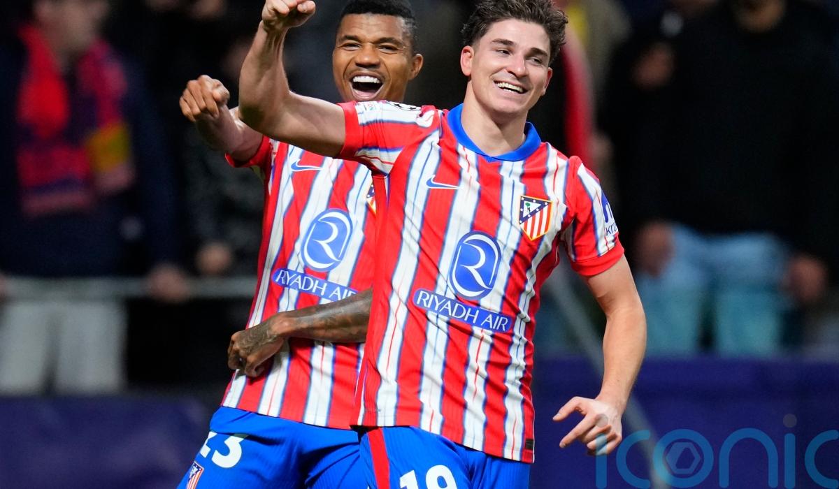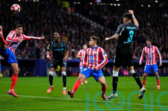 Julian Alvarez scored in the 90th minute as his brace helped Atletico Madrid to a 2-1 victory over Bayer Leverkusen in the Champions League as both sides finished with 10 men.