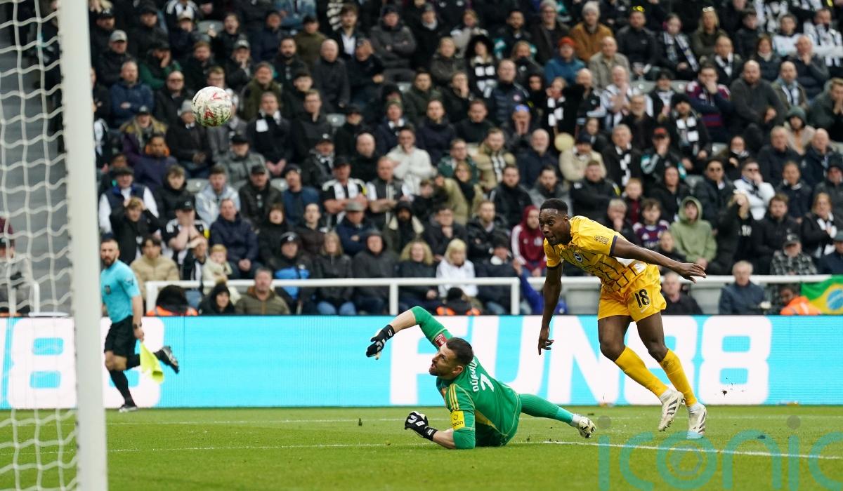 Danny Welbeck came off the bench to fire Brighton into the FA Cup quarter-finals at Newcastle as Anthony Gordon’s Carabao Cup final dream was shattered by a late red card.