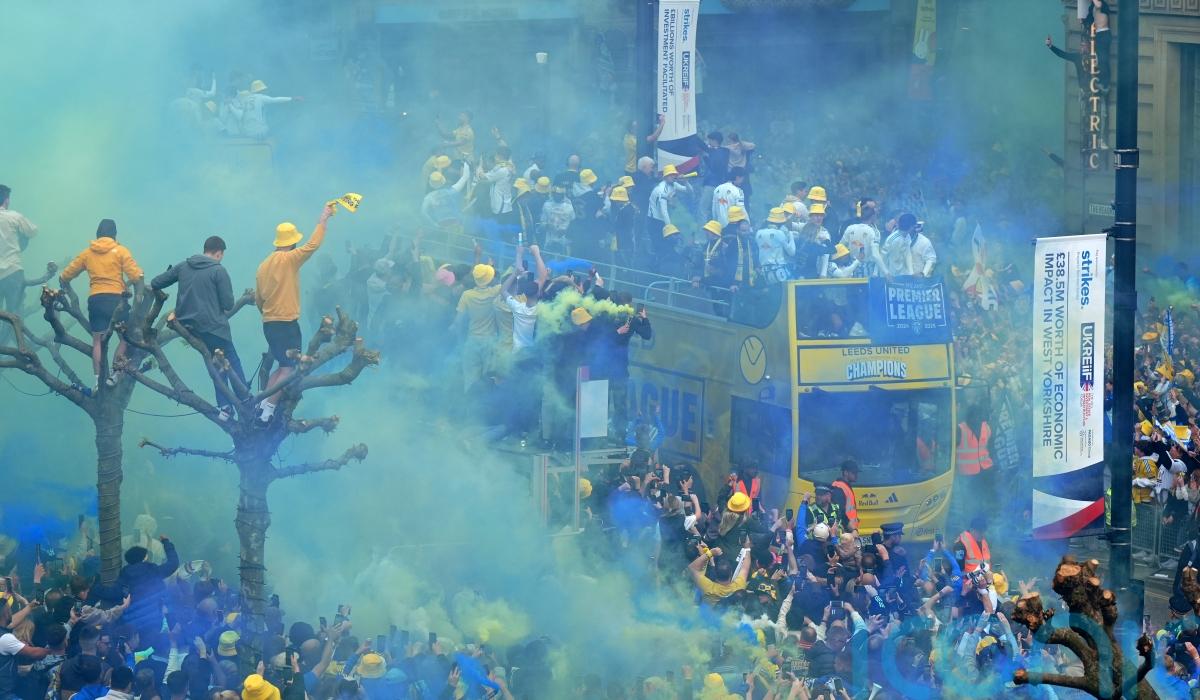 City centre streets were closed at 8am and supporters gathered hours before the players’ bus began its crawl down Wellington Street at 1pm towards the City Square and then along the Headrow to the Town Hall.
