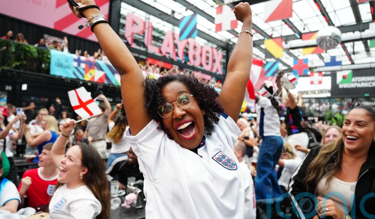Before kick-off, supporters waved England flags and loudly sang the national anthem at Boxpark Croydon and star striker Michelle Agyemang’s former team, Brandon Groves Community Club in Essex.