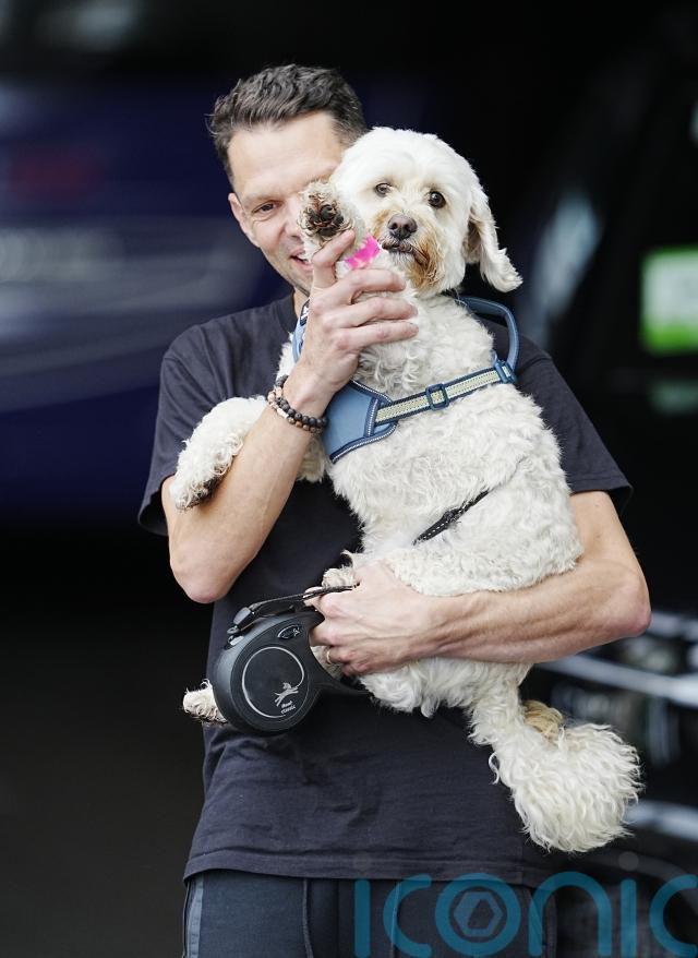 The team can be seen wearing their gold medals, chanting the white Cavapoo’s name and waving his paw after the match.