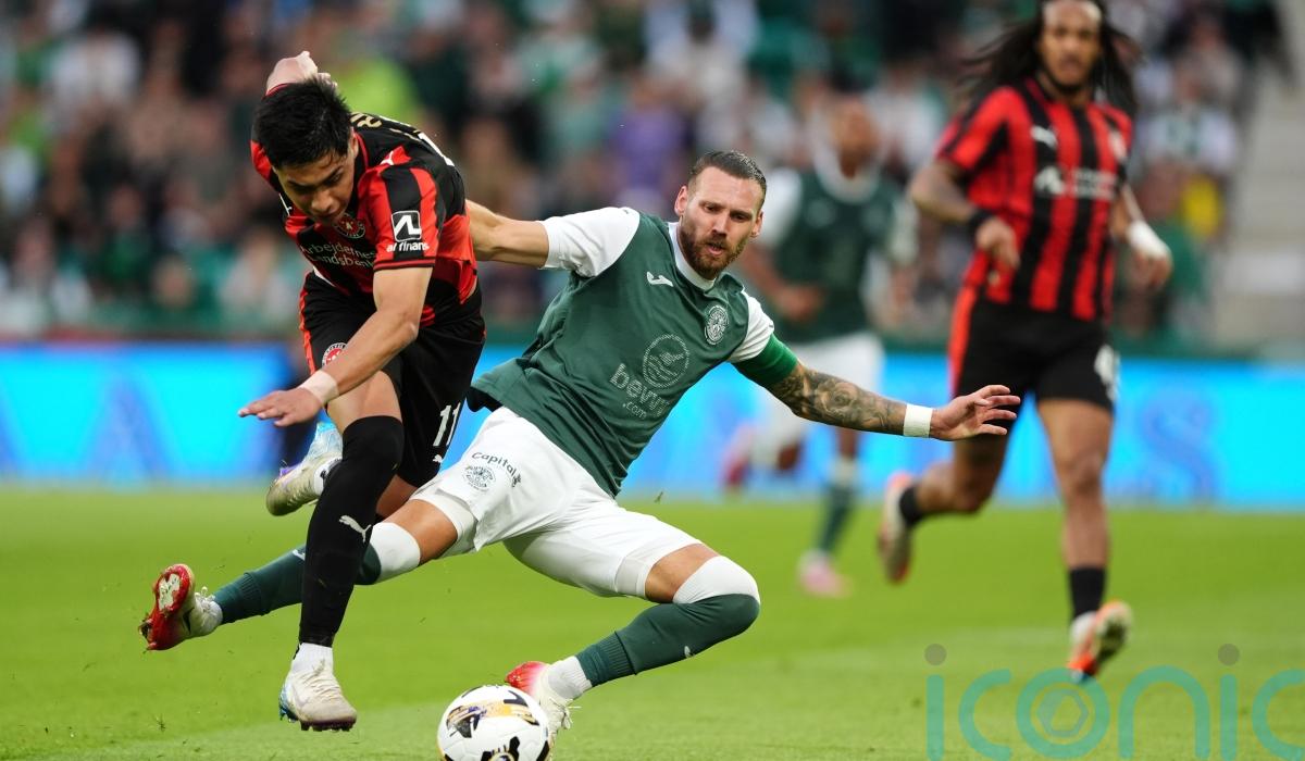 Jamie McGrath, who was instrumental in Hibs’ strong start, then fired just wide from the edge of the box before Dju Franculino headed just past the post at the other end.