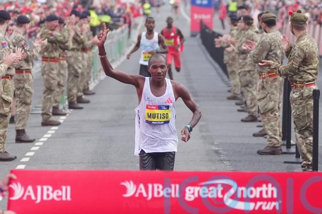 Kenya’s Alex Mutiso won the men’s race in 1:00.52.