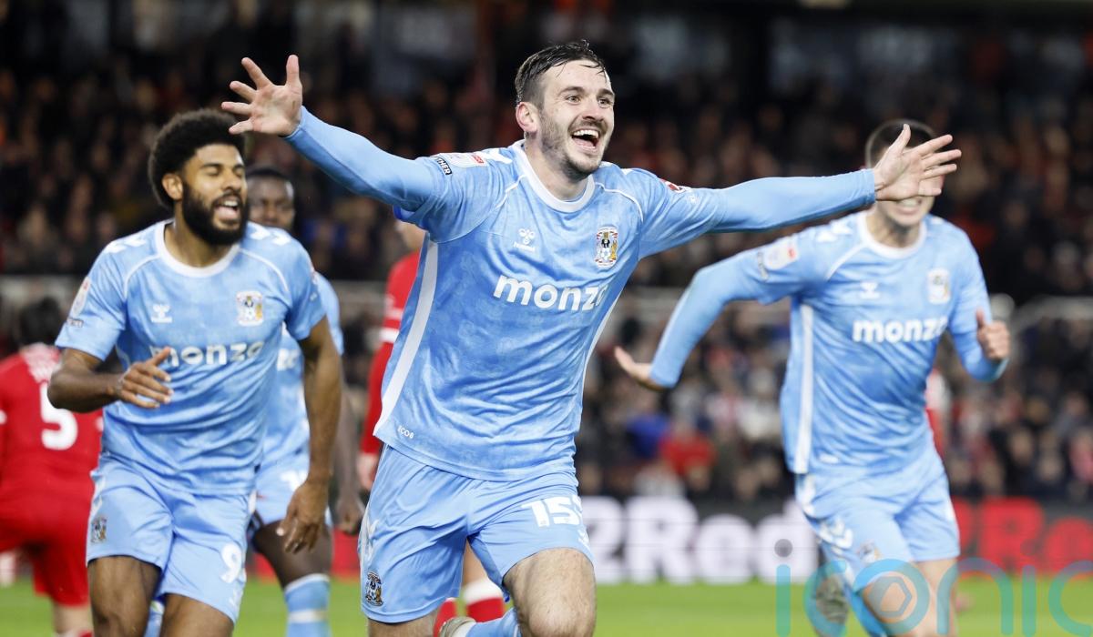 The Sky Blues landed two early blows in the opening 15 minutes, going ahead through Simms’ stunning top-corner strike and Kitching’s header.