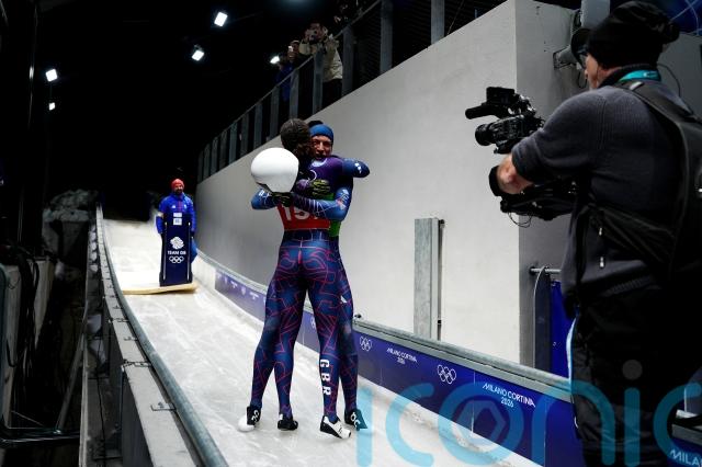 The former rugby player and Tabby Stoecker won the mixed team skeleton competition on Sunday, after Weston’s gold in the men’s event on Friday evening.
