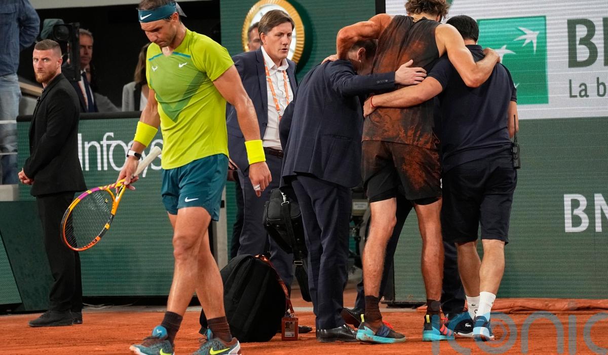 Nadal and world number three Zverev had been battling for more than three hours when, at the end of the second set, the German slipped to the ground with his ankle twisting underneath him.