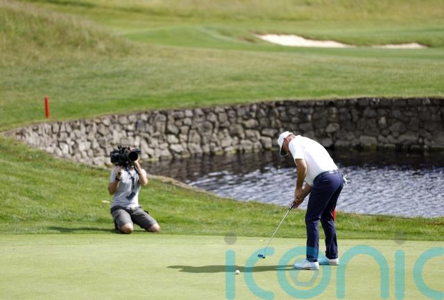All 48 players in the field teed off at the same time in a “shotgun start”, the 16 groups of three spread around the course in Hertfordshire.