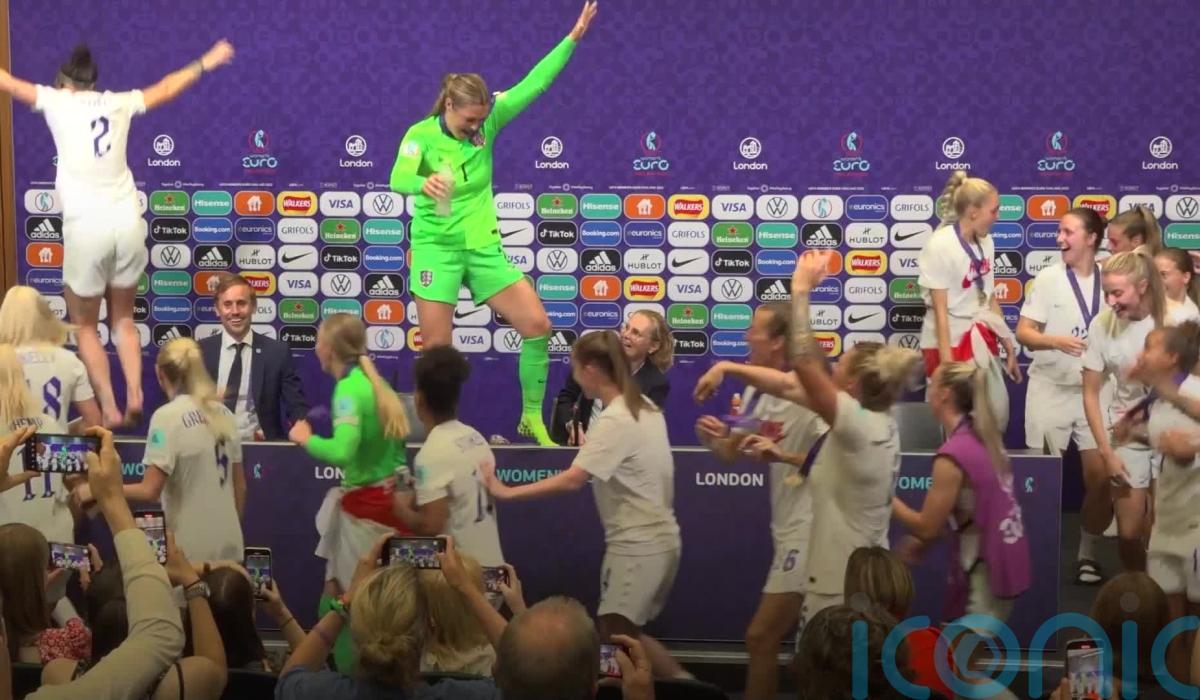 England’s jubilant players gate-crashed boss Sarina Wiegman’s post-match press conference singing ‘It’s Coming Home’ as they celebrated their dramatic 2-1 extra-time win over Germany in the Euro 2022 final at Wembley.