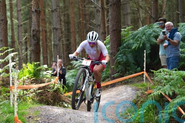 There was no sign of the back injury or multiple illnesses that have plagued the world champion over the last six months as she rode clear on the first of the seven laps around Cannock Chase forest to improve on the silver she took in Gold Coast four years ago.