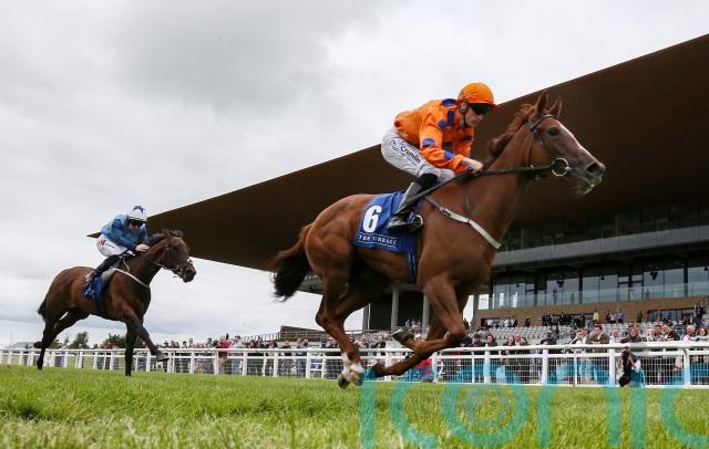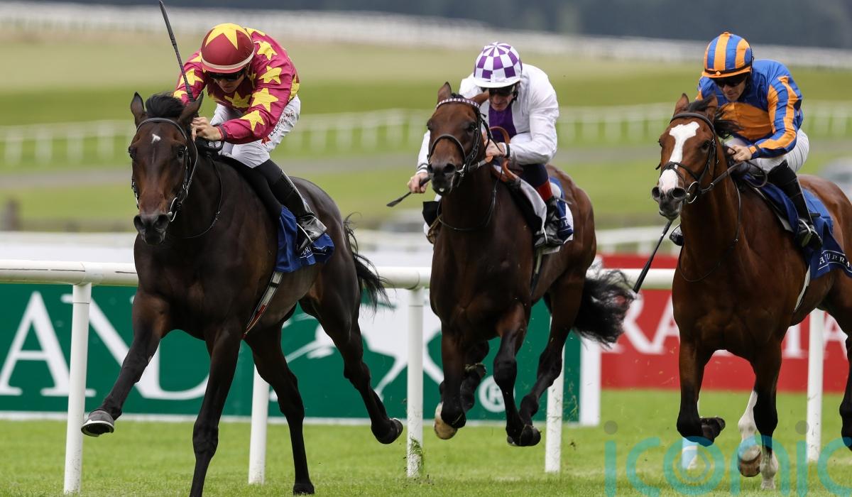 O’Brien’s charge quickened nicely at the two-furlong pole and was always doing enough, with Aidan O’Brien’s Salt Lake City running a race full of promise in second.