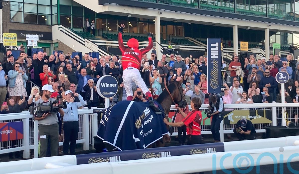 Harry and Roger Charlton’s juvenile was a heavily backed 11-8 favourite in race five and Dettori gave racegoers the celebration they were hoping for after steering the Invincible Spirit colt to an emphatic success.
