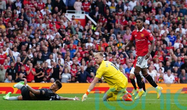 United picked up a loose pass and launched a break, with Fernandes’ excellent ball putting Rashford through to hit a drive that beat Ramsdale and rippled the back of the net in front of the Stretford End.