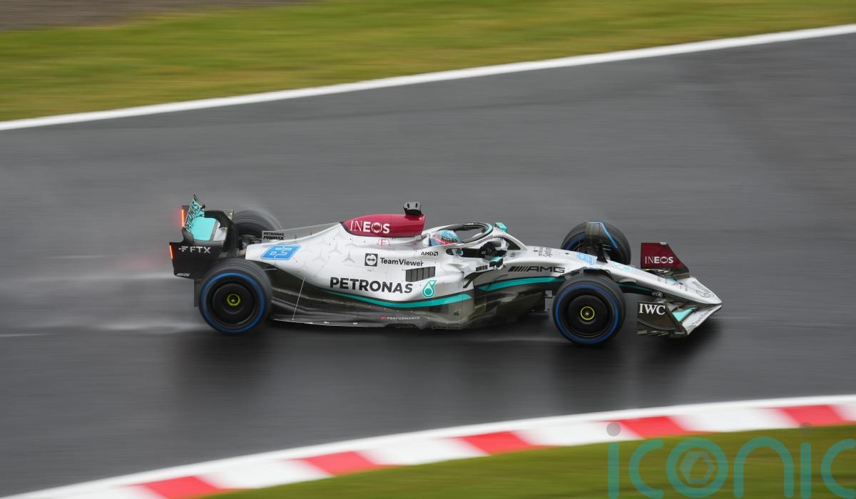 Mercedes duo George Russell and Lewis Hamilton led the way in a wet second practice for Sunday’s Japanese Grand Prix.