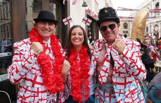 Thousands of fans will later cheer on England in Al Khor and millions more back home will watch on TV, with pubs and bars readying themselves for another bumper evening.