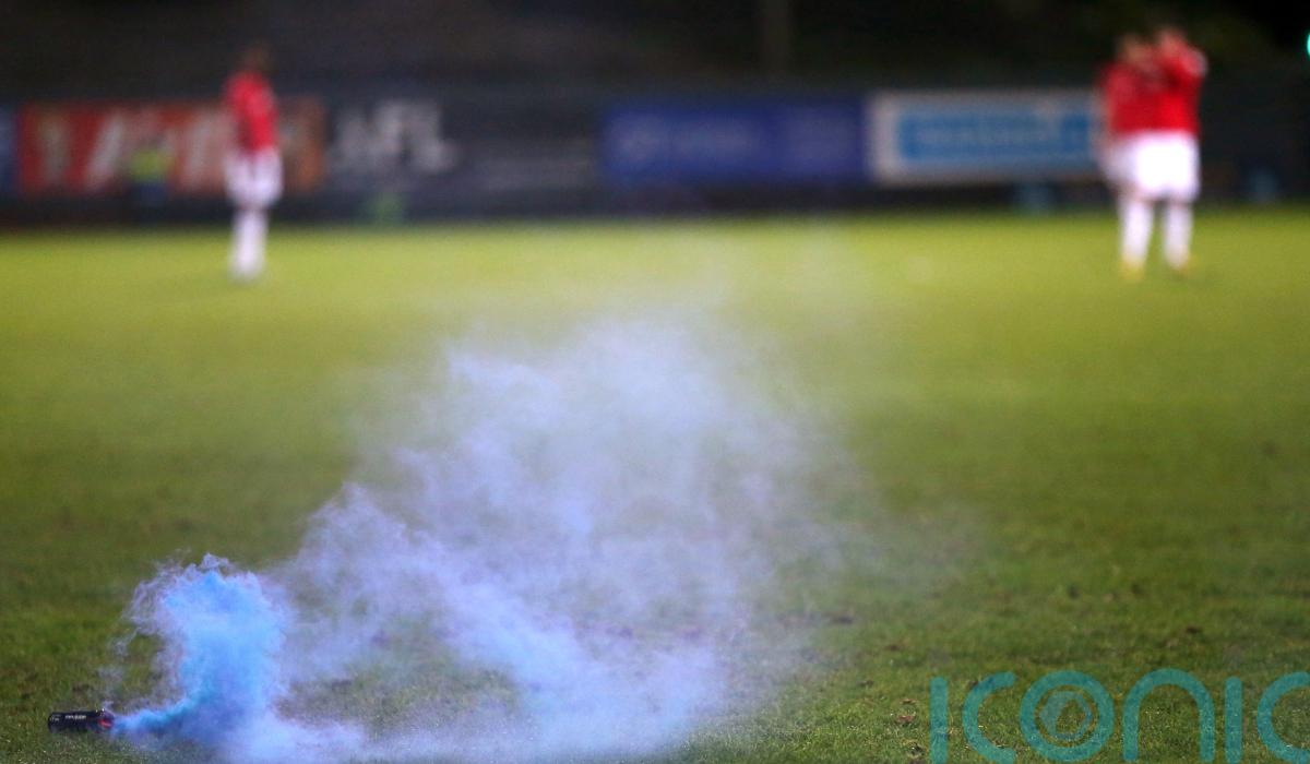 After flares were thrown onto the field of play, City goalkeeper Tom Glover was hit on the head by a metal bucket and subsequently suffered a cut to the face in the 22nd minute of the encounter, with his team leading 1-0.