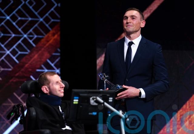 Congratulations @Rob7Burrow on winning the Helen Rollason award, recognising individuals in the face of adversity.#RLWC2021 Ambassador Kevin Sinfield receives a special award for his fundraising efforts for MND.